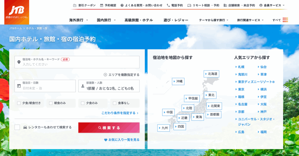 【PR】JTB 今回は国内旅行(宿泊、ツアー)予約サイトのご紹介。高級旅館・ホテルから、 お得なシティホテル、大人気の東京のテーマパークホテルまで 24時間オンライン予約可能です。 鉄道や航空(大手航空会社)などの交通と宿泊を自由に組み合わせてつくるダイナミックツアーも好評です。 割引クーポン特集やタイムセールプランも要チェック!夏休みにぜひ! @おすすめプラン 横浜・八景島シーパラダイスショップクーポン1,000円分付きワンデーパス前売り引換ワンデーパス+クーポン 大人 6,300円シニア 4,800円中学生 4,800円幼児 3,200円 熱海後楽園ホテル熱海の夜景・相模灘を一望できるリゾート型ホテル。広々とした客室のタワー館とリゾート感たっぷりのAQUASQUAREがあります。おとな2名1泊1部屋合計税込25,520円〜214,280円大浴場、露天風呂、温泉、駐車場あり 商材名 JTB運営者 HT※当サイトはアフィリエイトプログラムを利用し宣伝目的で作成しております。